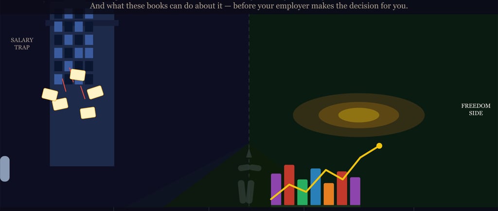 Step-by-step from full dependency on a salary to a life built on your own terms. For anyone whose office could send a 6am email tomorrow.