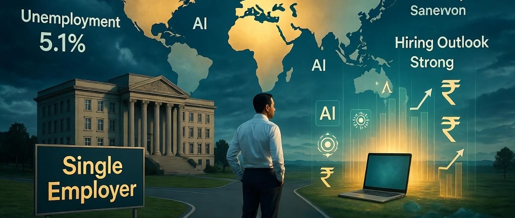 Closer home, India’s labor market tells a tale of two halves—strong employer confidence colliding with stubborn structural challenges.