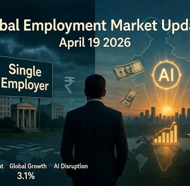 As of today, April 19, 2026, the global employment conversation is still dominated by March’s data — and the signals are becoming impossible to ignore. Global growth forecasts are cautious. The Middle East conflict is pushing energy prices higher. In India, the unemployment rate has climbed to 5.1% — the highest in five months — with urban joblessness rising further. While headline numbers still look “manageable,” the underlying reality for professionals is clear: depending on one employer for 100% of your income has never been riskier.