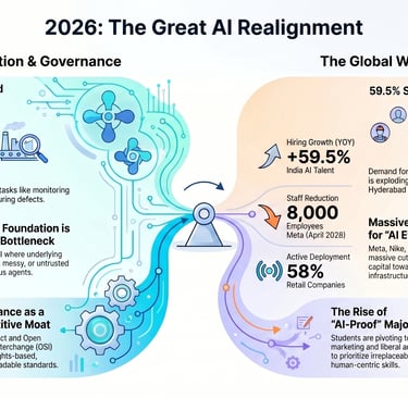 India's Tier-2 Tech Boom: Defying global layoff trends, AI hiring in India has surged by 59.5% year-on-year. While Bengaluru remains a major global hub, the demand for AI talent is rapidly expanding beyond it. Hyderabad has experienced over 51% growth in AI engineering hiring, and Vijayawada has seen a 45.5% increase. The market is actively hunting for professionals skilled in AI Agents, Azure AI Studio, and AI Productivity to handle real-world deployments.